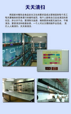 天天清扫:将国家对餐饮业食品安全卫生的法规要求,变成从管理层到每个员工每天要做到的简单易行的操作规范,人人做清扫,天天保清洁。